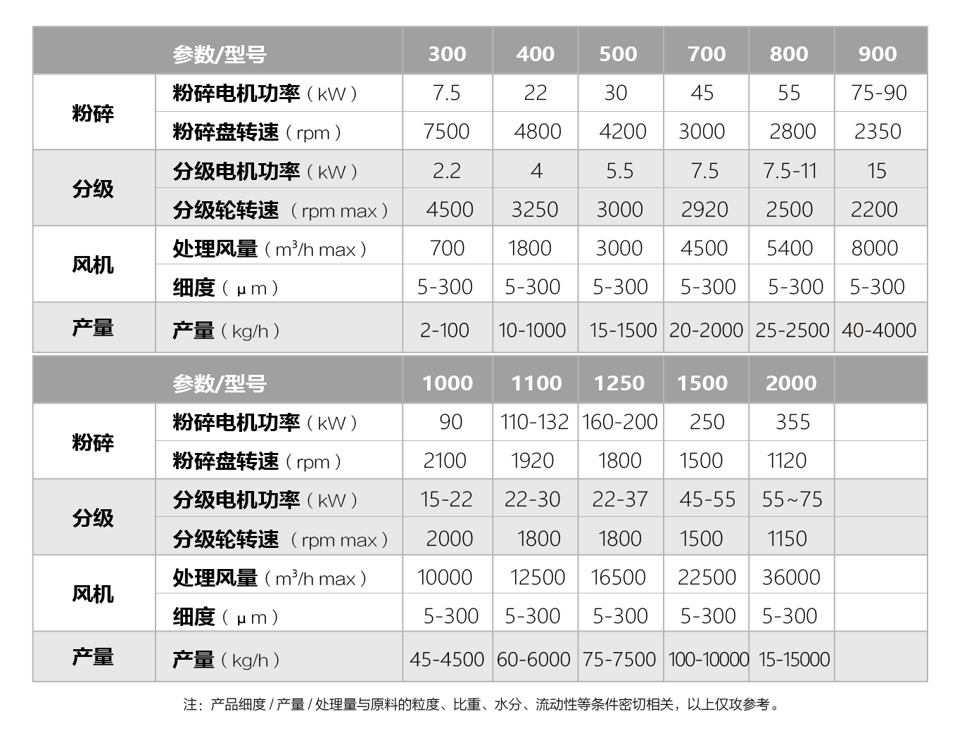 粉碎分級一體化,通過調整分級輪獲得理想的產品粒度,適用于D50:2~45μm之間的產品粉碎。