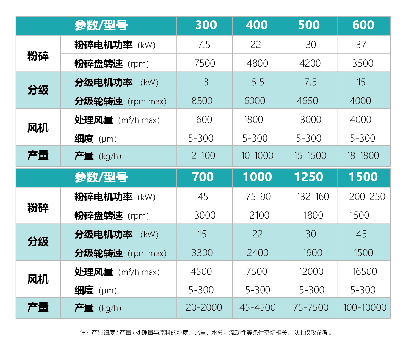 采用德國技術,高精度機械粉碎機,并不斷技術創新升級,適用50目-5000目(300μm-2.5μm)。