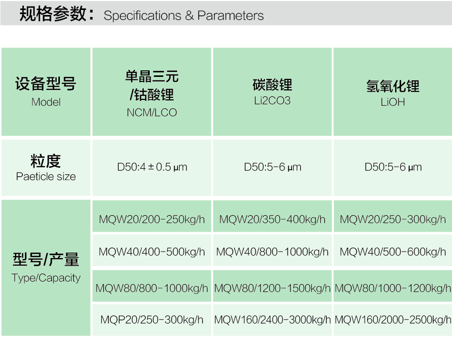 • MQW閉路循環氮氣防護磷酸鐵鋰專用氣流磨